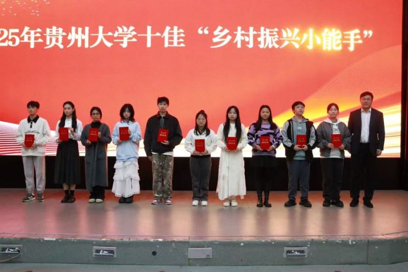 本次活动还表彰2025年贵州大学十佳乡村振兴小能手,并向获奖同学颁发证书和奖金。