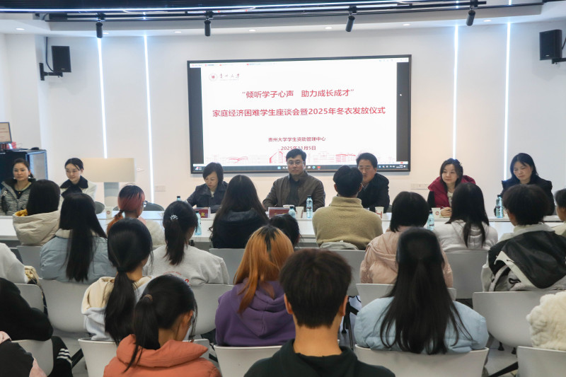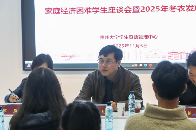 贵大新闻网讯(文字/学生记者 杨胜兰 摄影/学生记者 邓丁瑞)11月5日下午,2025年家庭经济困难学生座谈会暨冬衣发放仪式在我校科技园举行。副校长王旭出席仪式,资助管理中心领导以及老师、各学院受助学生代表参加仪式,学生资助管理中心主任赵祥伦主持仪式。
